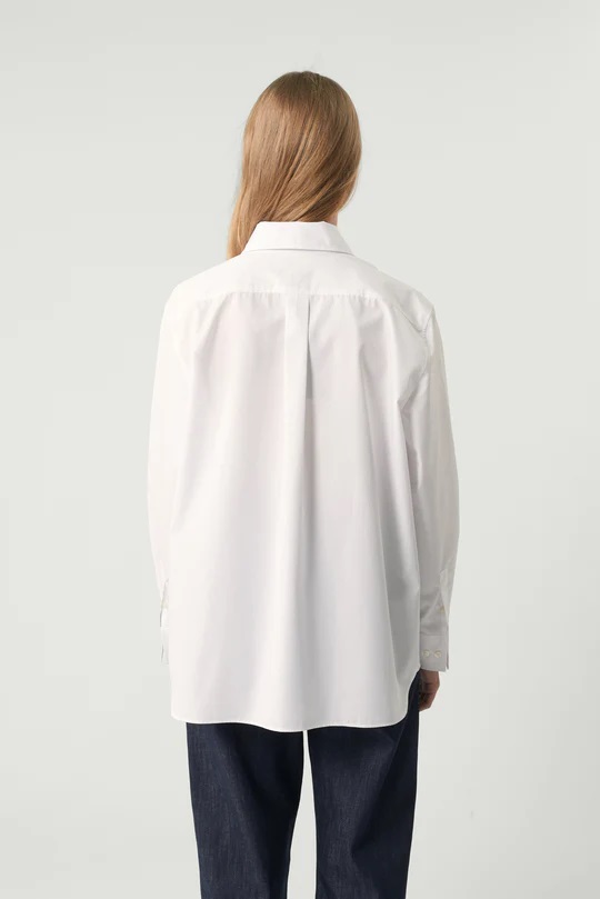 Saphir est une chemise classique d’homme, facile à associer et à juxtaposer à d’autres pièces. Elle est oversize et se porte aussi bien sur un jean qu’une jupe longue.