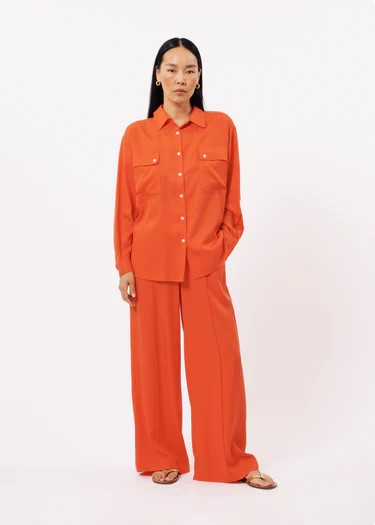Chemise manches longues munie de poches plaquées avec rabat boutonné. Pour un style décontracté, vous pouvez la porter fermée ou ouverte. Elle peut se porter en ensemble avec un pantalon loose de la même couleur.