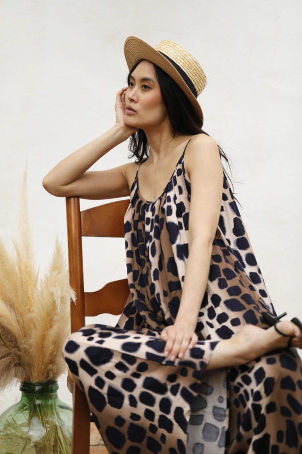 Gabrielle est une robe longue à fines bretelles, élégante dans sa simplicité. Sa coupe évasée offre un tombé fluide, tandis que les plis à l’encolure ajoutent une touche de sophistication. Avec un décolleté à la fois devant et derrière, elle allie subtilement confort et féminité, parfaite pour diverses occasions.