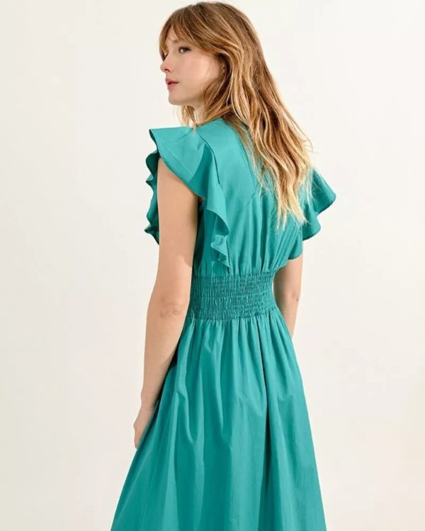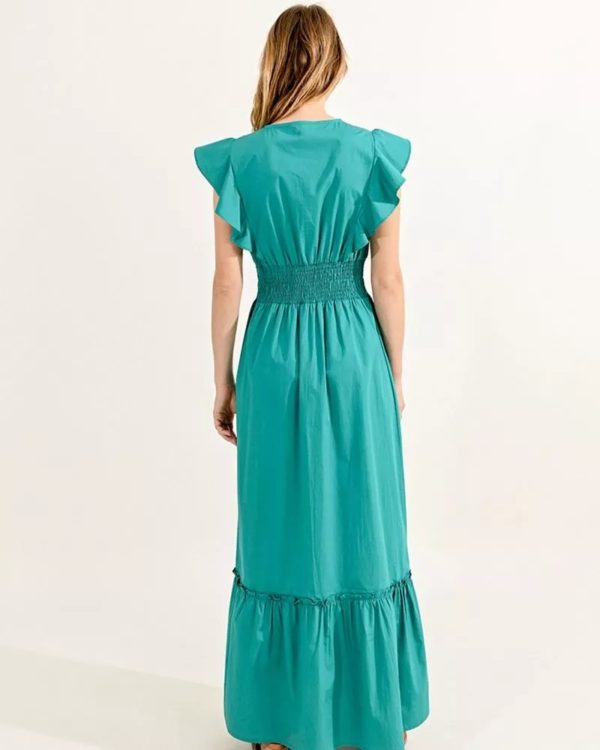 Cette robe longue avec sa bande smockée à la taille et ses volants sur les épaules ainsi que sur le bas de la jupe va vous faire craquer. C’est la robe parfaite pour les beaux jours.