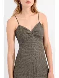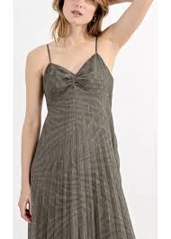 On aime son plissé et le bustier à fines bretelles.