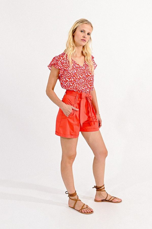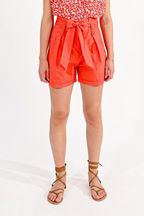 On aime sa taille extra haute signature de silhouette élancée, on craque pour ce short en coton avec sa large ceinture à nouer et poches latérales, fermeture zippée sur le devant.