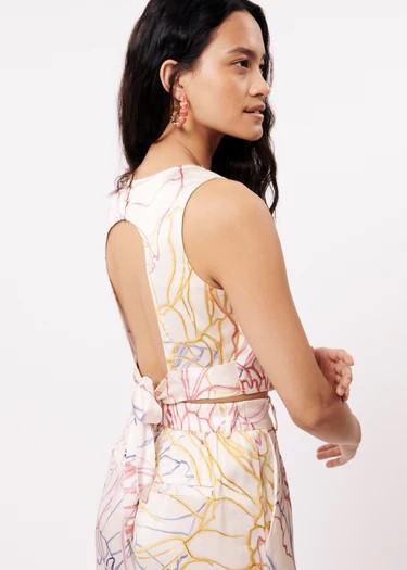 Une pièce forte à elle toute seule. Avec son dos nu, ce top à nouer à la taille et au dos habillera votre dos. Vous pouvez le portez avec le pantalon Albane.